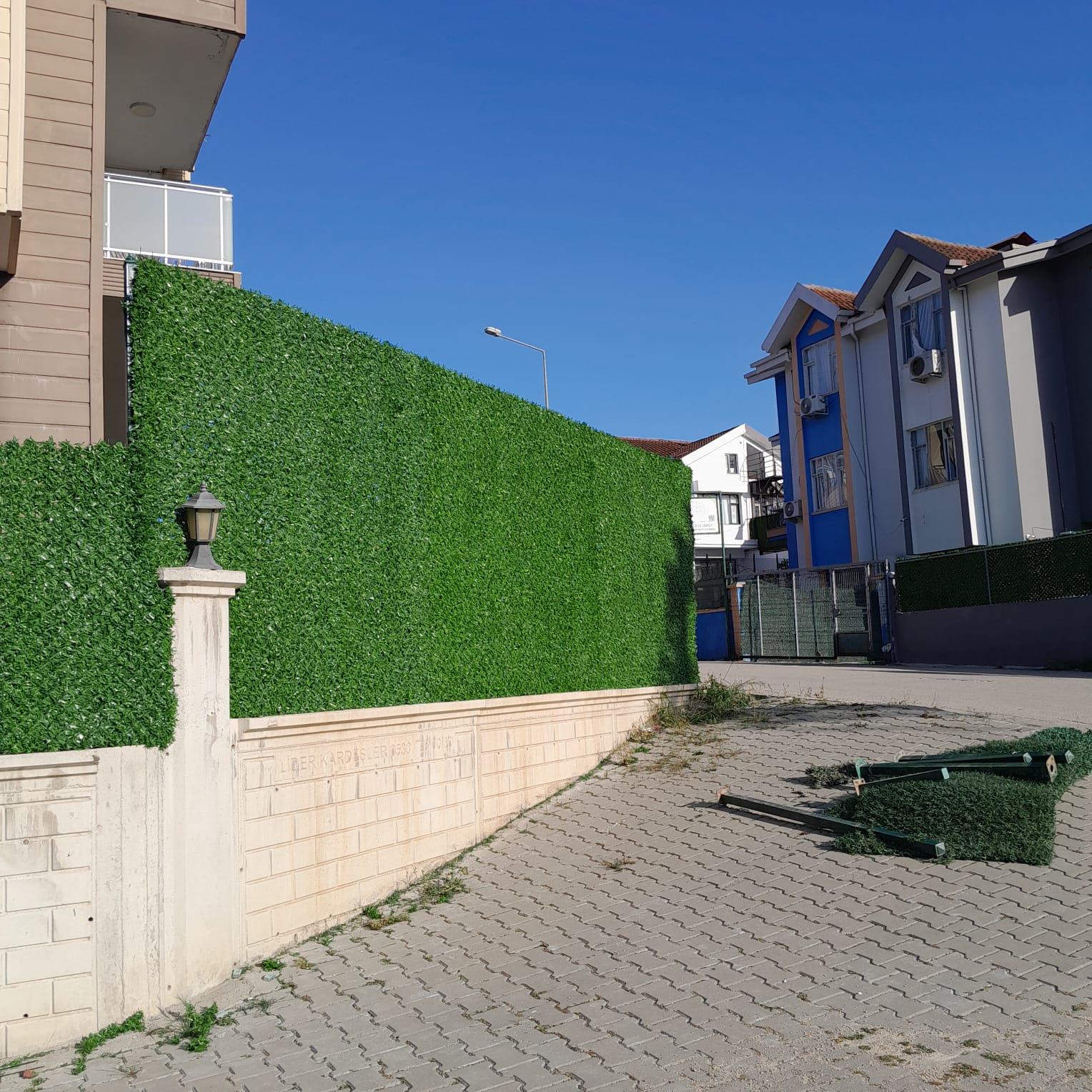 • Yeşil çit, yapay olmasına rağmen doğayla uyumlu görünümüyle yaşam alanlarını ferahlatır.